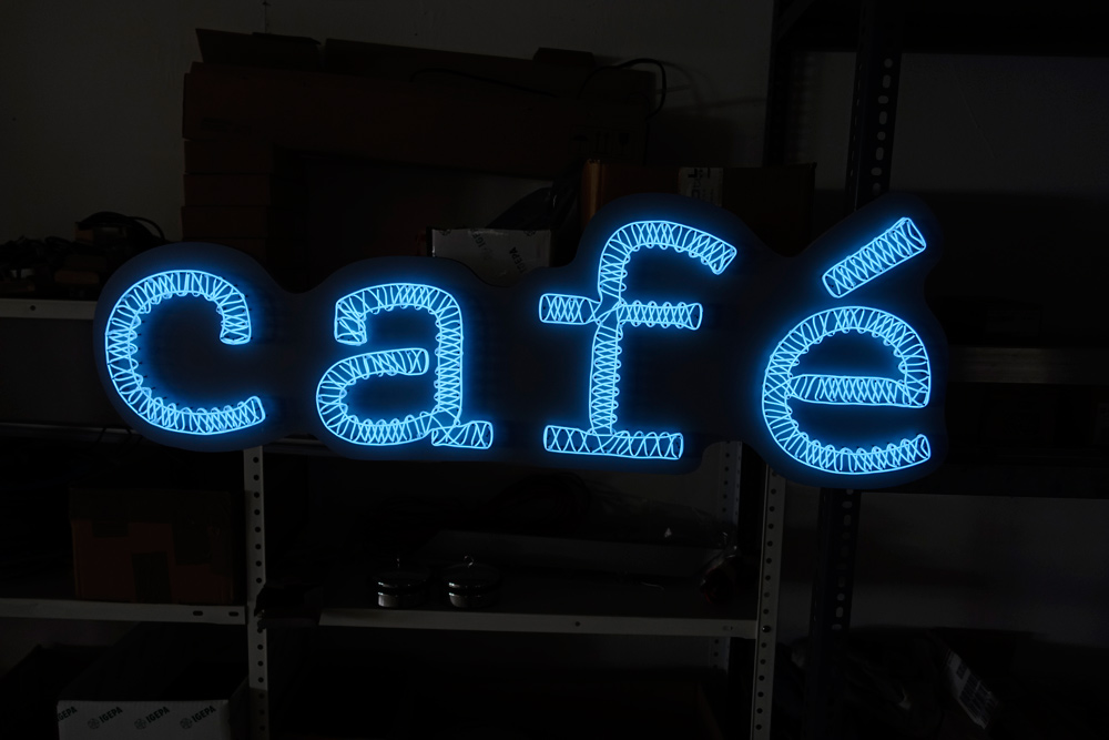 Reliefbuchstaben leuchten nach vorn oder nach hinten. Die Kombination aus lackiertem Aluminium und Acryl hat eine sehr exklusive Ausstrahlung.