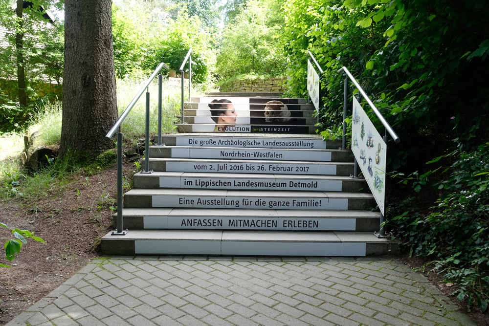 Aufkleber können gut sowohl im Innen- als auch im Außenbereich genutzt werden. Stellen Sie sich eine Messe vor, bei der dem Besucher bereits vor der Halle Fußspuren auf dem