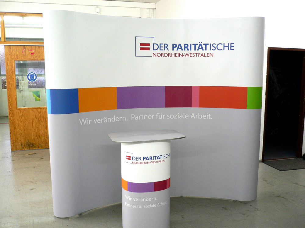 auf Papierbasis und sind sehr strapazierfähig. Zudem kann der Counter rund um mit Folien bedruckt und mit Ablagefunktionen im Inneren oder an den Seiten ergänzt werden. Auch faltbare Counter in Transporttaschen sind möglich, die dennoch eine ausreichende Stabilität haben. Wir unterstützen Sie, wenn Sie möchten, gern beim Aufbau.