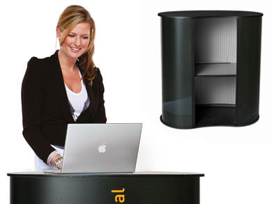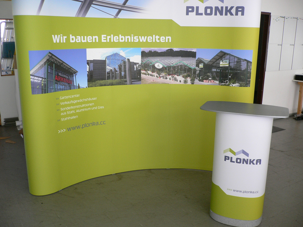 An einem Counter können Sie mit Messebesuchern sehr gut ein Gespräch führen, Flyer auslegen oder weitere Informationsmaterialien präsentieren. Abgestimmt auf das Erscheinungsbild Ihres Unternehmens und Ihre individuellen Vorstellungen gibt es unterschiedliche Größen, Formen und Platten des Counters. Auch die Materialien des Korpus und Fußes reichen von Holz über Aluminium bis hin zu Wabenplatten