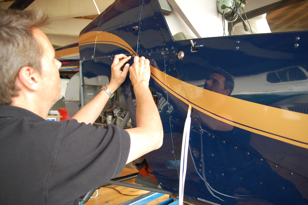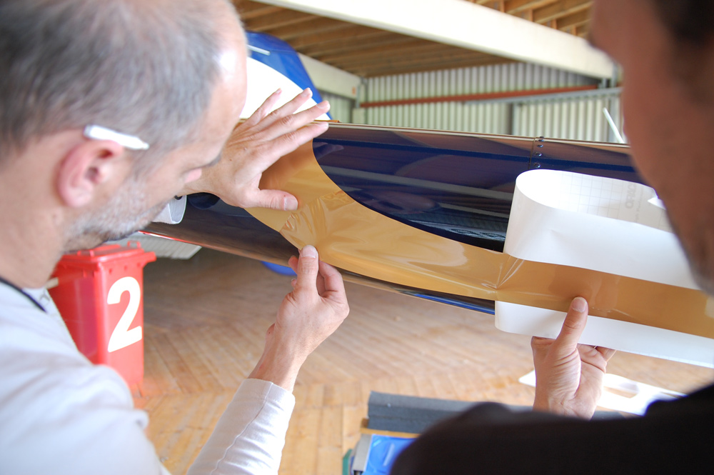 Folienbeschriftung auch für Flugzeuge und Hubschrauber.